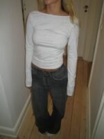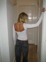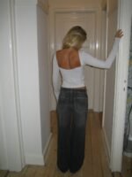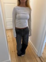 An elegant and minimalist long-sleeved top in a beautiful light grey shade. The design is form-fitting. accentuating the figure. while the open back adds a sophisticated and sensual touch. Perfect for both everyday wear and evening outings—style it with high-waisted pants or a skirt for a chic and modern look.